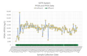The Groundwater Extraction and Treatment System (GETS) has been operating continuously for more than three years and has successfully treated over 450 million gallons of water. Data collected over this time confirm that the system consistently meets its design objectives.